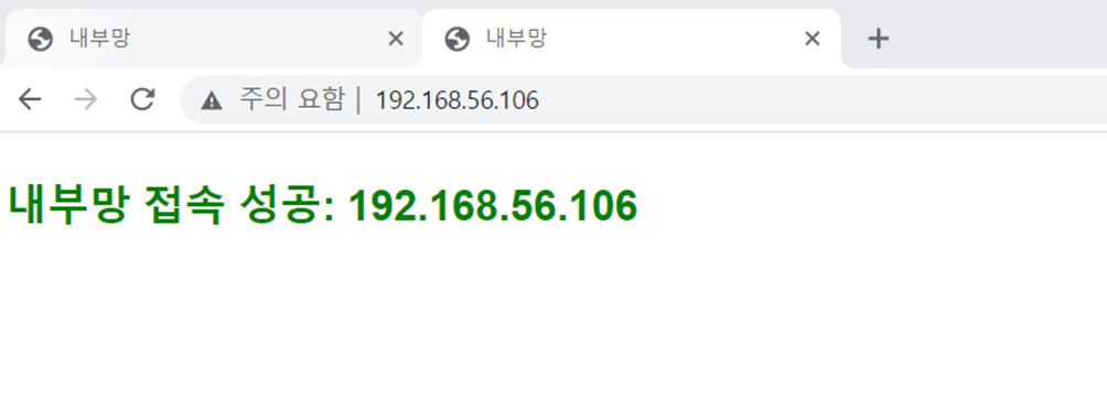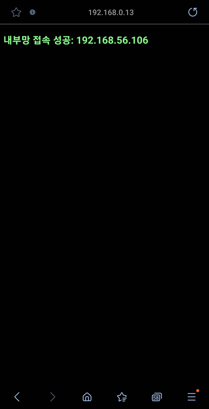 다른 대역대인 192.168.0.13의 경로로 접속했을때 192.168.56.106번의 데이터를 출력하는 것을 확인.