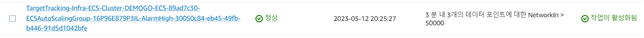 2. 이름이 TargetTracking-EC2ContainerService/DEMOGO-ECS/web-AlarmHigh-RANDOMSTRING 이고 조건이 NetworkIn > 50000 인 경보를 3분 이내에 3개의 데이터 포인트에 대해 클릭합니다.