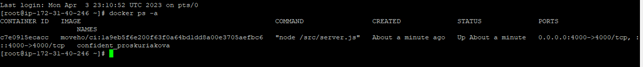 [root@ip-172-31-40-246 Docker-CI]# docker run -p 4000:4000 moveho/ci:1a9eb5f6e200f63f0a64bd1dd8a00e3705aefbc6