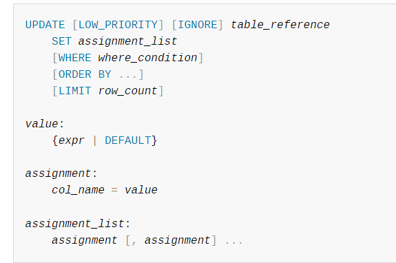 MySQL :: MySQL 8.0 Reference Manual :: 13.2.13 UPDATE Statement