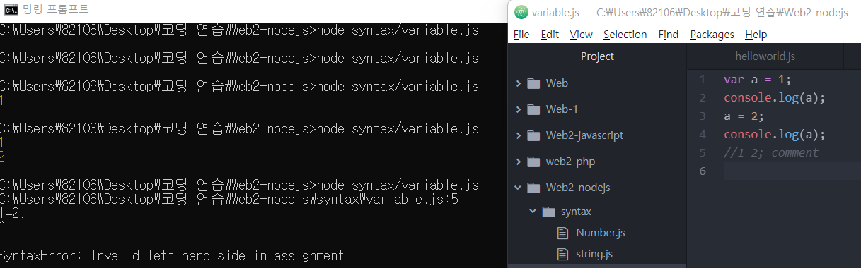 성공적으로 변수 1과 2를 불러오는데 성공했다.