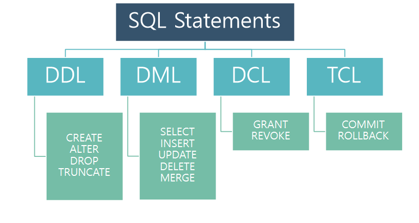 DDL, DML, DCL, TCL 이렇게 구성된다.