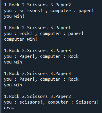 각각의 번호에는 rock, scissors, paper 값을 부여하였다