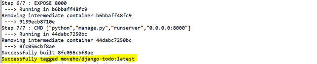 moveho/django-todo latest 8fc056cbf8ae 5 minutes ago 972MB